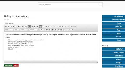 - In your editor click where you want to insert the article link